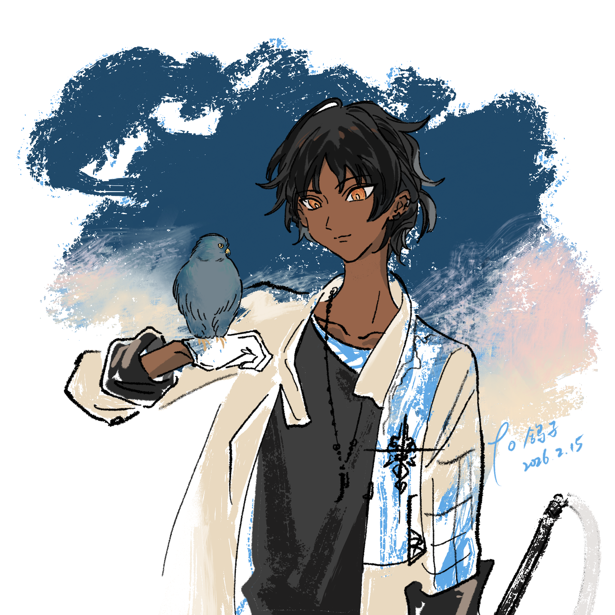 @RubbleSea 鸽子生日快乐 特邀画了鸽子的天敌之一烟色隼助阵
